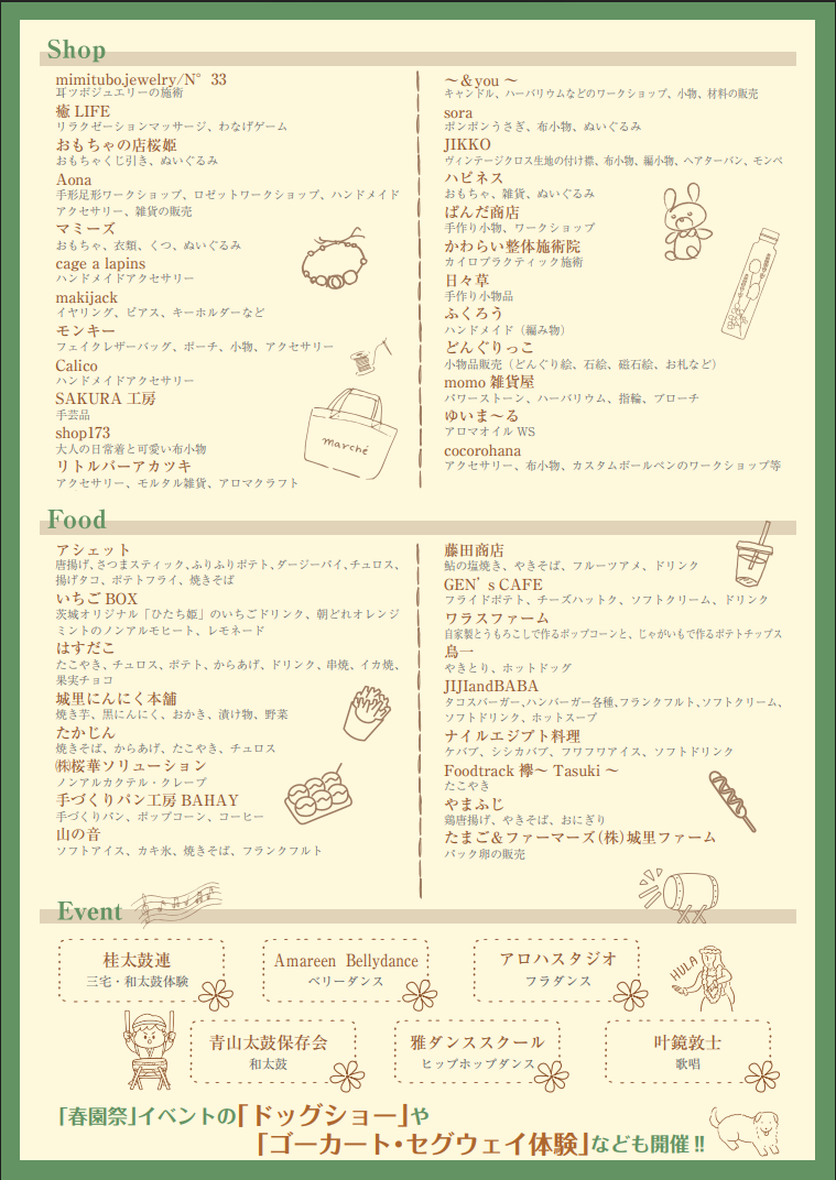 ステージ発表だけではなくその他多くの雑貨やフード出店もありますので、家族皆さんで1日楽しめそうです。
