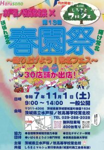 11月1日(土)に開催されます「第20回しろさとマルシェ」&「第13回春園祭」(水戸桜ノ牧高等学校常北校文化祭)に、ステージ出演させて頂く事になりました。